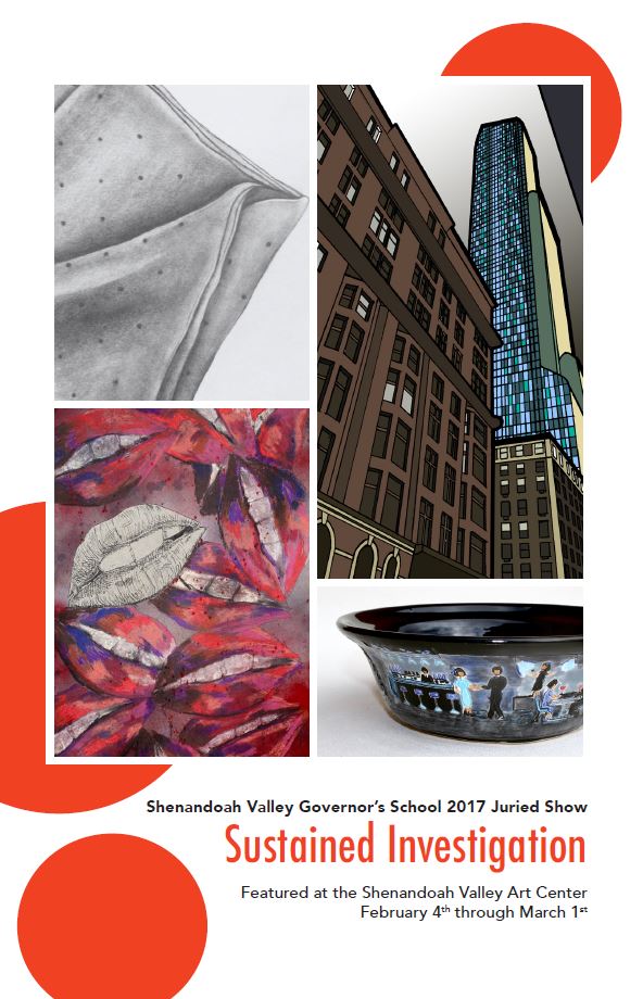 We are so grateful to The Shenandoah Valley Art Center for letting us showcase our students’ work in this beautiful setting. The Shenandoah Valley Governor’s School offers a regional art program that connects visual arts juniors and seniors with other talented students from Augusta County, Staunton, and Waynesboro. Our college-level studio setting encourages students to develop their own unique aesthetic built on a strong foundation in technical skill. Regular peer critiques and study of influential artists assist students in formulating educated opinions regarding quality and