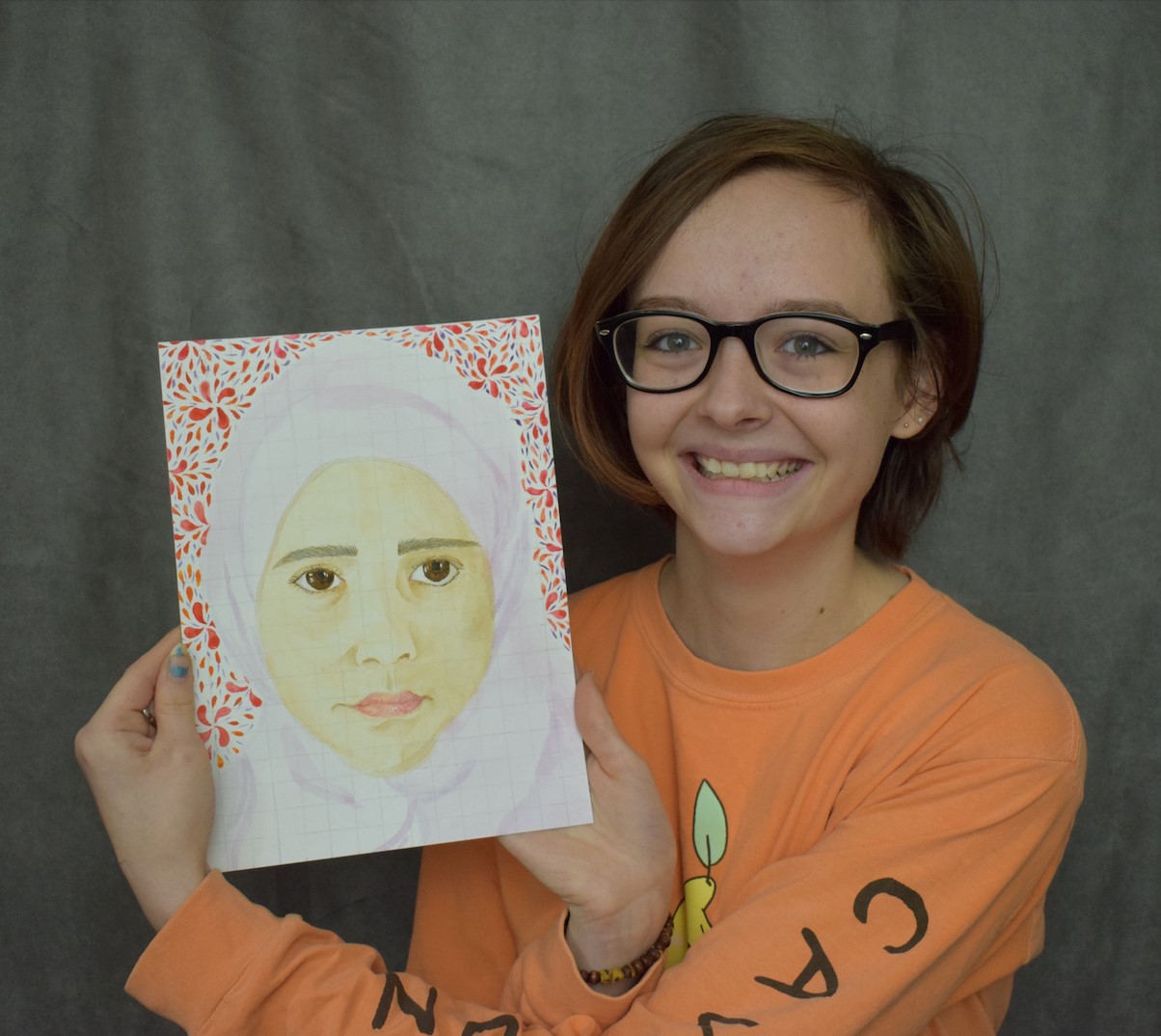 Our participation in this project served multiple purposes: In addition to giving our students the chance to make artwork to foster connection and joy with someone across the world, this project also allowed the junior Studio class to work on fundamental portraiture skills: producing accurate facial proportions, practicing different textures, capturing the “spirit” of the child, and mixing skin tones with undertones. Knowing that their “child” would receive the portrait as a gift was added inspiration! Three senior students opted to participate as well!