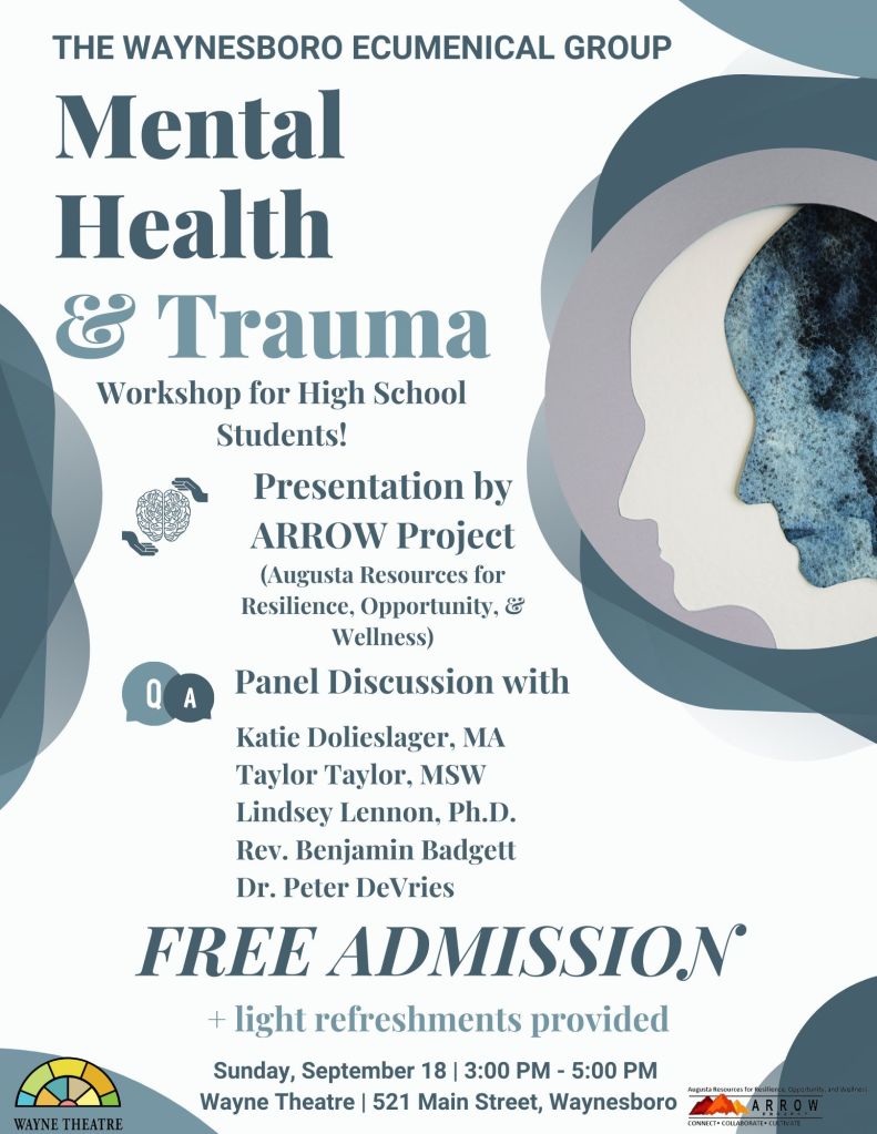 Our very own Sociology instructor, Dr. Lindsey Lennon, will be on a panel discussing Mental Health and Trauma for teens this Sunday afternoon at the Wayne Theater in Waynesboro. Admission is free. Please feel free to spread the word about this important topic for today’s youth.