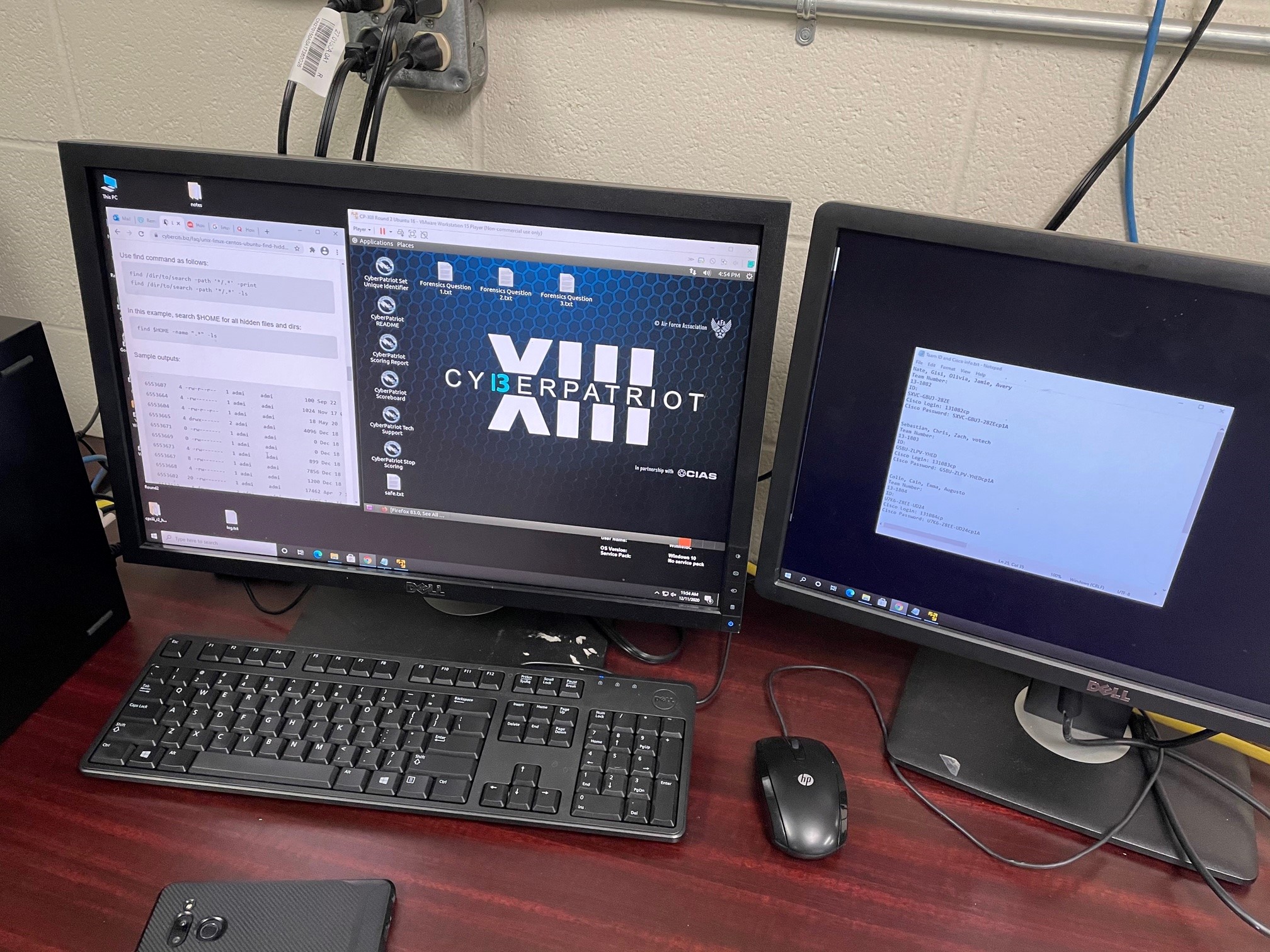 SEMESTER 1:The Cyber Security Operations class has three teams participating in the National Youth Cyber Defense Competition, or Cyber Patriots (https://www.uscyberpatriot.org/competition/Competition-Overview/competition-overview). Teams are given Windows 10, Windows Server, and Ubuntu Linux computers (virtual machines.) They must answer forensics questions, find and fix insecure security configurations, and remove malware from those computers. The teams are also given a quiz and network configuration from the Cisco Networking Academy. Each round of the competition is online and lasts six hours. Our teams have completed Round 1 and Round 2; all three teams placed in the top 25% nationally in Round 2. Round 3 will be held January 22—wish us luck!