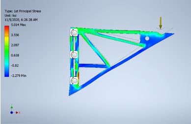 Mechanical drawing and Autodesk Inventortm were next on the syllabus. Students developed their drafting skills and used them to design ABS (plastic) brackets for 3D printing and testing. This introduction to mechanical engineering will include torque and finite element analysis through problems and Autodesk simulations. The first semester culminated with a unit on energy and machines.