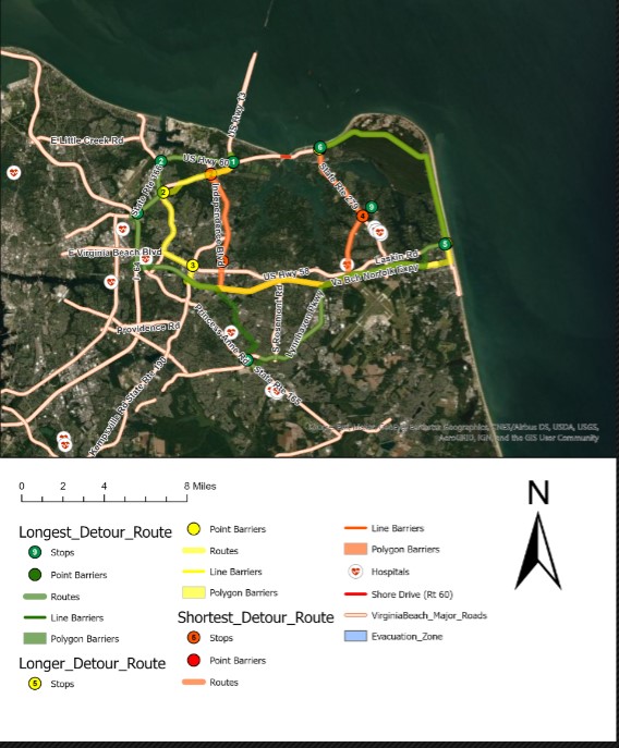 Students also researched a potentially explosive situation that occurred in Springfield, Virginia and determined how to make detours for the interstates and escape routes for residents to shelters and the effects of flooding from Hurricane Katrina. Their midterms included a traffic incident on a bridge, a train incident in Philadelphia, Chesapeake Bay flooding predicted for climate change, and the wind effects from Hurricane Katrina.