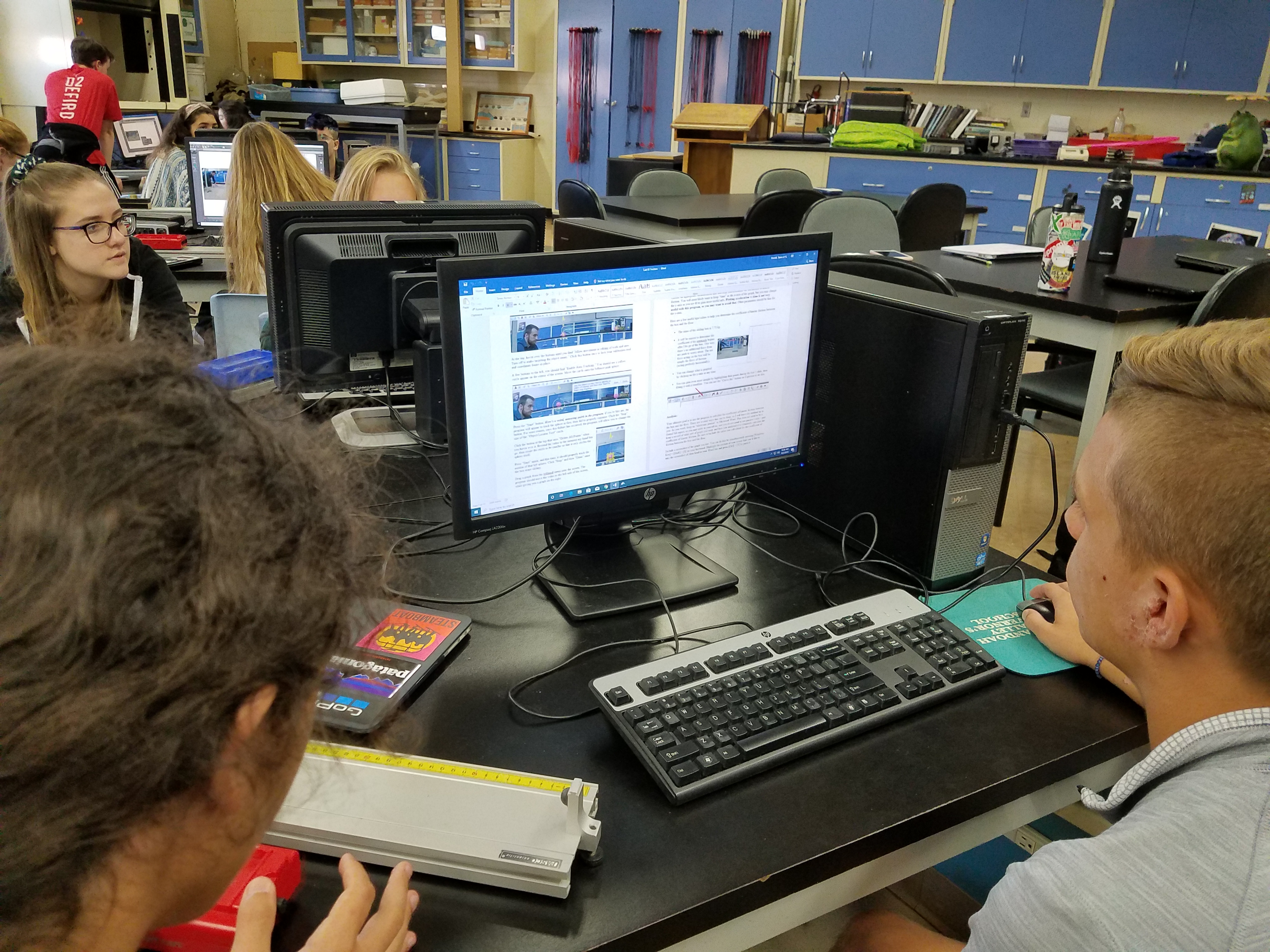 Students in the Molecular/Microbiology classes are working on their “Cells Do Life” project which encourages them to convey their understanding of the cell as a dynamic unit whose complex organization and activities constitute life. They began the semester by considering major biological principles and big ideas, and then they studied basic chemistry and biochemistry in order to understand the molecular properties and interactions that underlie life processes. Laboratory work has focused on reviewing basic skills such as use of the microscope, and mastering new techniques such as performing spectrophotometric assays and using standard separation methods for biomolecules including column chromatography and gel electrophoresis. Additional labs involved molecular modeling and detection of biomolecules in foods. More recent lab work has been related to cell structure and function, including an investigation of diffusion and osmosis and a study of enzyme activity. MolBio classes will end the semester with a unit on microbiology and immunology.