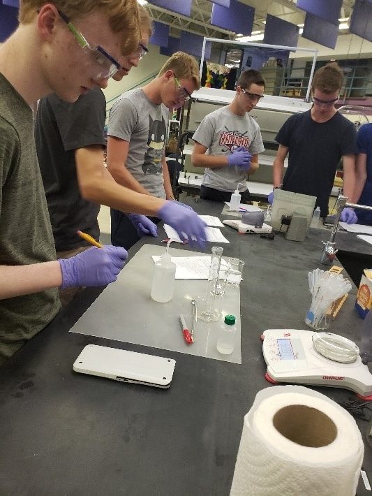 The next unit will focus on gases and the atmosphere. Gas Laws and the kinetic molecular theory provide a background for the study of atmospheric chemistry, which will culminate in a research project on air pollution. Lastly this semester will be the study of chemical reactions including both qualitative and quantitative aspects revealed in different types of reactions, reaction equations and stoichiometry.