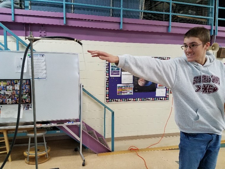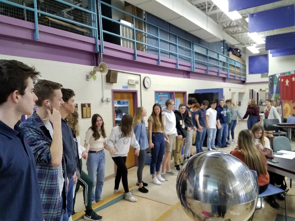 SEMSTER 2: Students began the semester exploring electricity and electrostatics. They calculated the charge on two spheres repelling each other a certain distance, learned about capacitors and electroscopes, used a Van de Graaff generator to divert a stream of water, make their hair stick up, and create a long-conducting chain of students.