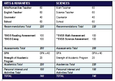 ¨ SVGS assessment scores, GPA, Strength of Transcript